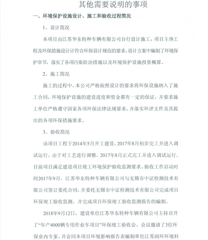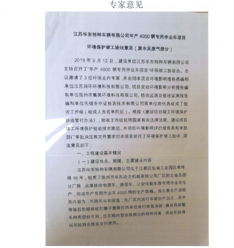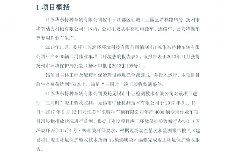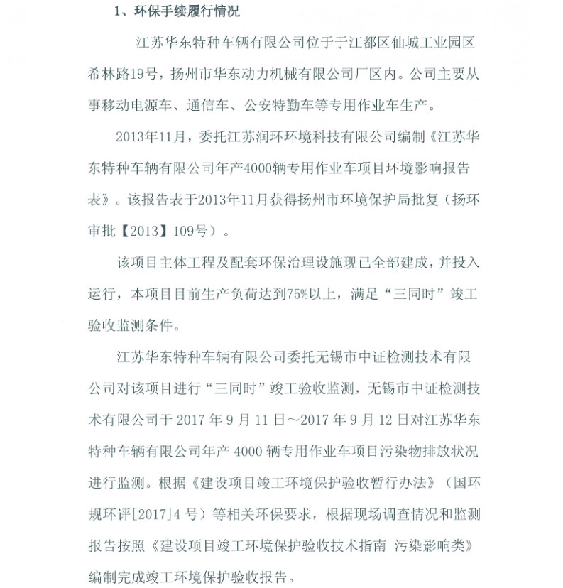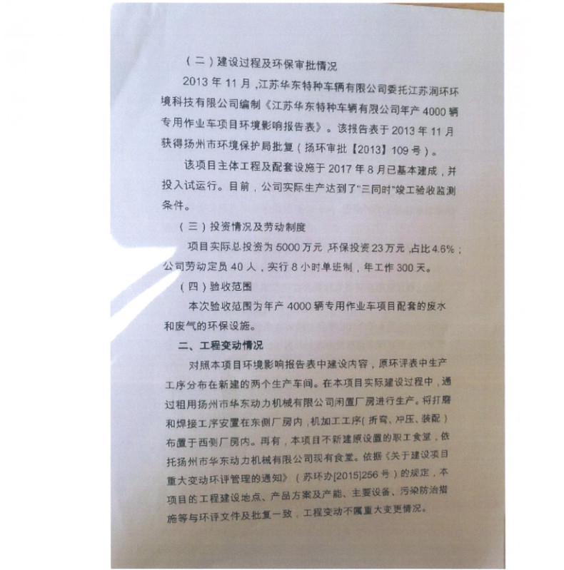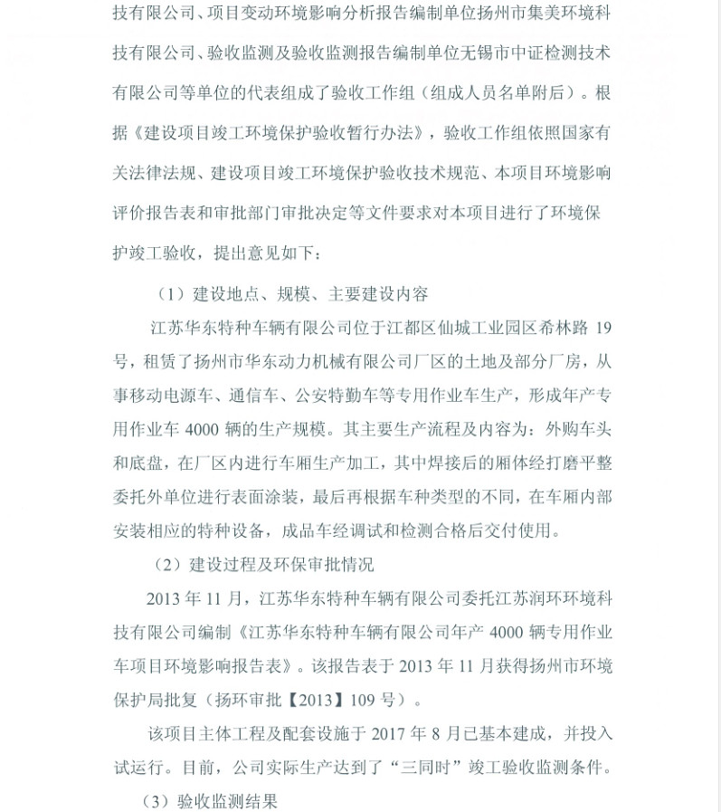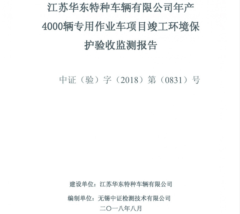 江蘇華東特種車(chē)輛有限公司年產(chǎn)4000輛專(zhuān)用作業(yè)車(chē)項(xiàng)目竣工環(huán)境保護(hù)驗(yàn)收?qǐng)?bào)告