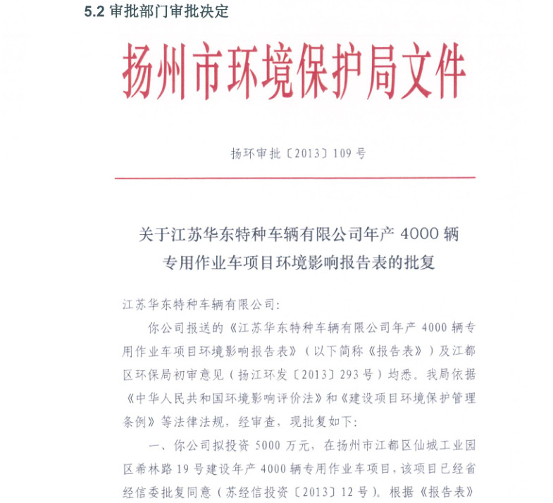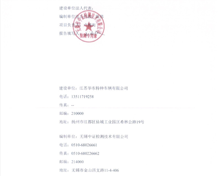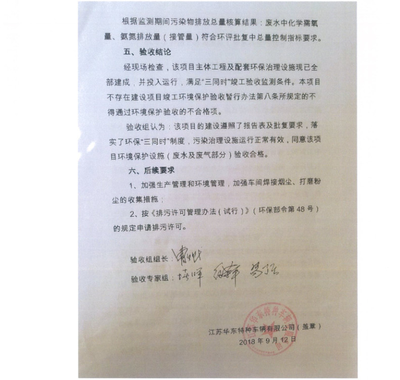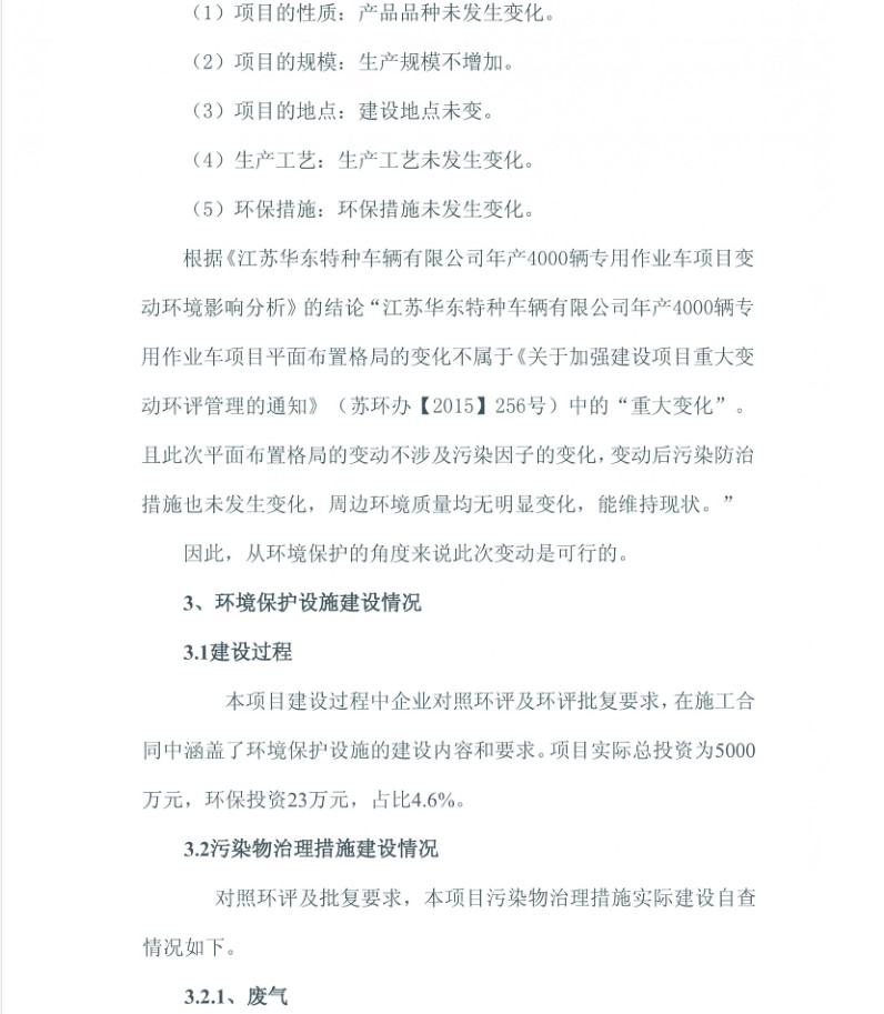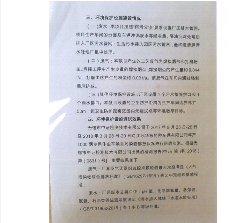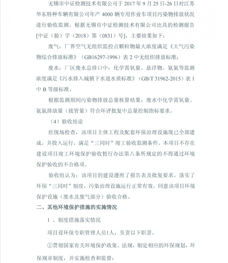 江蘇華東特種車(chē)輛有限公司年產(chǎn)4000輛專(zhuān)用作業(yè)車(chē)項(xiàng)目竣工環(huán)境保護(hù)驗(yàn)收?qǐng)?bào)告
